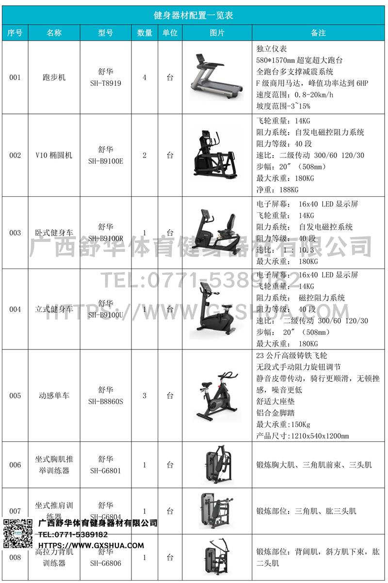 1.leyu.乐鱼V9跑步机SH-T8919*4台-独立仪表-简洁大气,全新外观设计,健康运动新选择;心率监测功能,可通过手握心率、无线心率带等不同方式实时采集心率数据;580*1570mm超宽超大跑台-跑感舒适,跑台整体安全稳定;全跑台多支撑减震平台,保证跑台超强支撑力,达到180kg支撑,满足专业健身房需求。F级商用马达-超强马达,AC 3.0HP 交流,峰值功率达到6HP,F级商用品质。速度范围达到0.8-20km/h;V9跑步机可实现跑台扬升功能,坡度范围-3~15%,满足客户不同的锻炼需求。